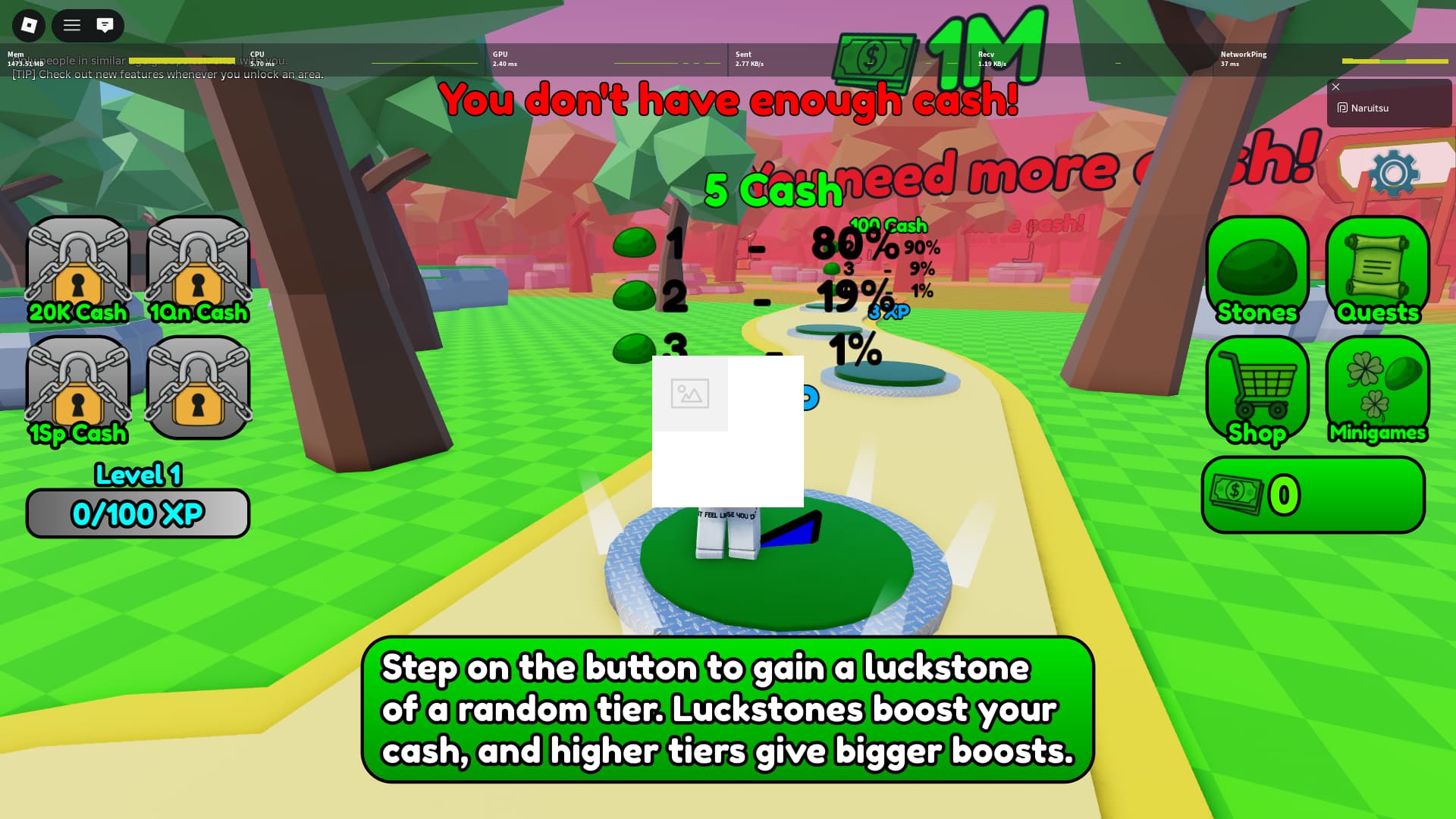 Luckstones boost cash. I didn’t realize this wasn’t obvious (but looking at the tutorial, I guess it wasn’t clear, it just said that higher tiers give more). So I changed the tutorial a bit and put something in the luckstones gui telling you about it.