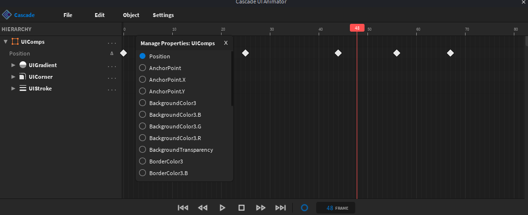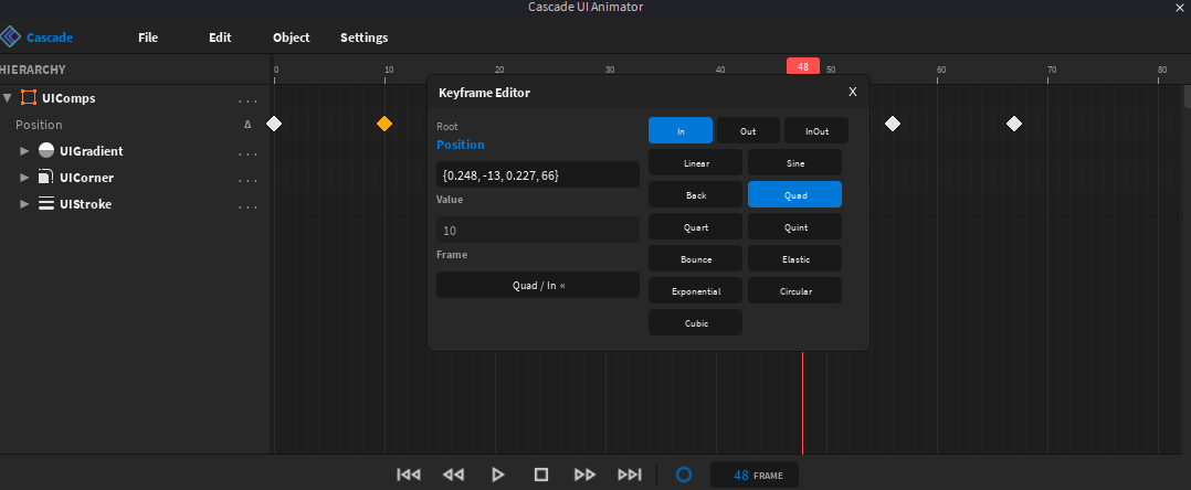 Step easing — new “Step” option in the easing picker. Holds the previous value and snaps instantly at the keyframe, like a hold/constant keyframe. Works in forward play, reverse, and preview scrubbing. (Suggested by @winpol)