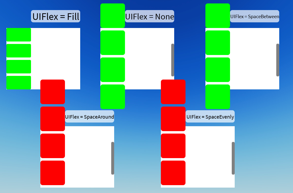 These Issues likely extend to the Horizontal Flex direction and probably also the UIGridLayout but I don’t have the Time to check them out right now