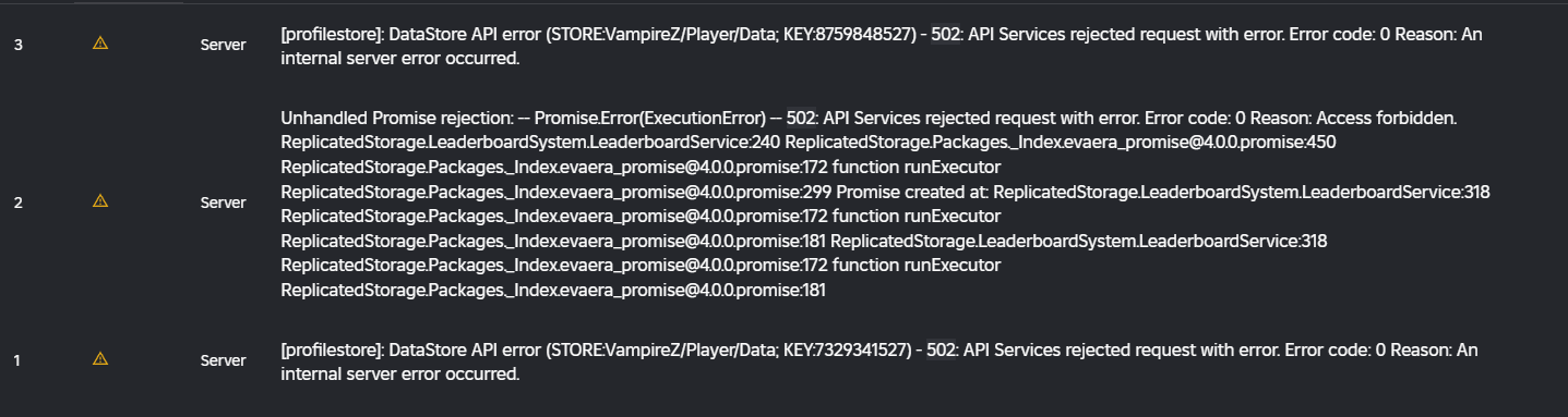 Some 5xx is expected, we don’t offer 100.00% reliability. 5xx errors are not your fault, it means we failed to serve the request on the Roblox side, no action item for you other than retrying.