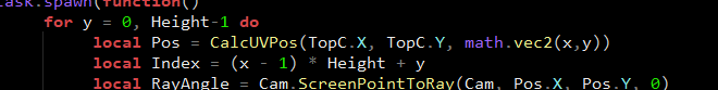 ik my math function colours are weird, but its because im storing them in a separate module script which is called with “math” so it doesnt have to create the math function every time i call it. its just there which is a small micro optimisation as far as i can tell