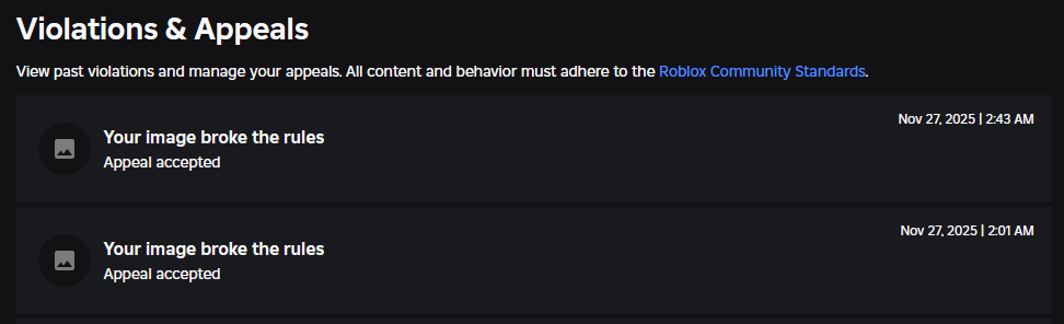 Hello, I’m submitting this post because my Roblox account Mkhada124 was terminated due to assets that were incorrectly moderated. After the termination, I appealed each moderated asset, and all of my appeals were approved, confirming that the items did not violate Roblox’s Community Standards.