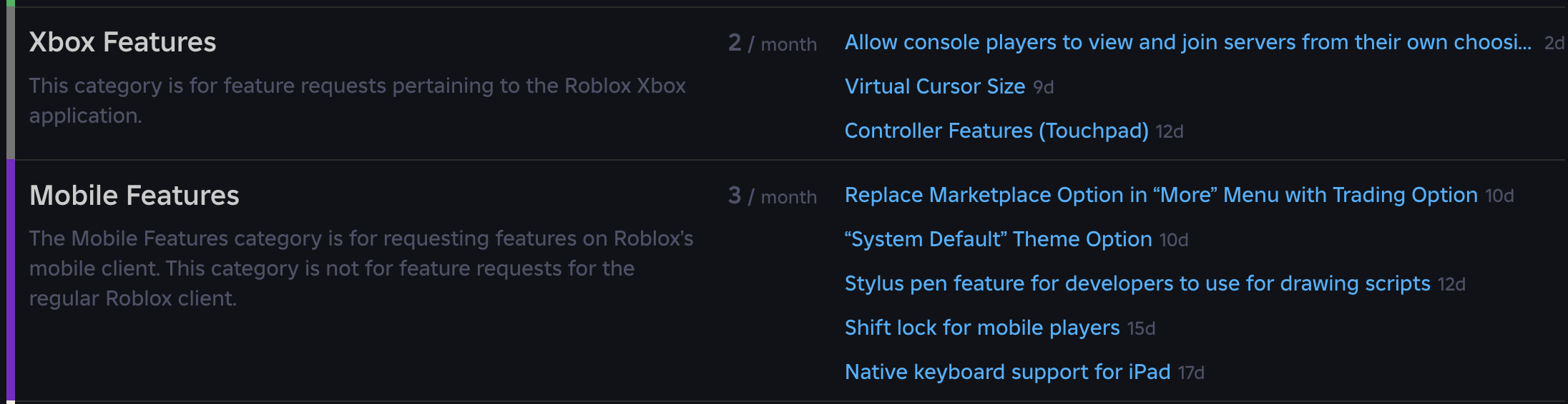 I’m not sure if this is accurate, but some teams/groups might not be reachable by feature request. By design sure, like it might not make sense or is a far less known group. Maybe more policy or moderation systems. I feel they wouldn’t do much with said feedback, and staff/teams openness to feedback overall seems hit or miss, but I digress.