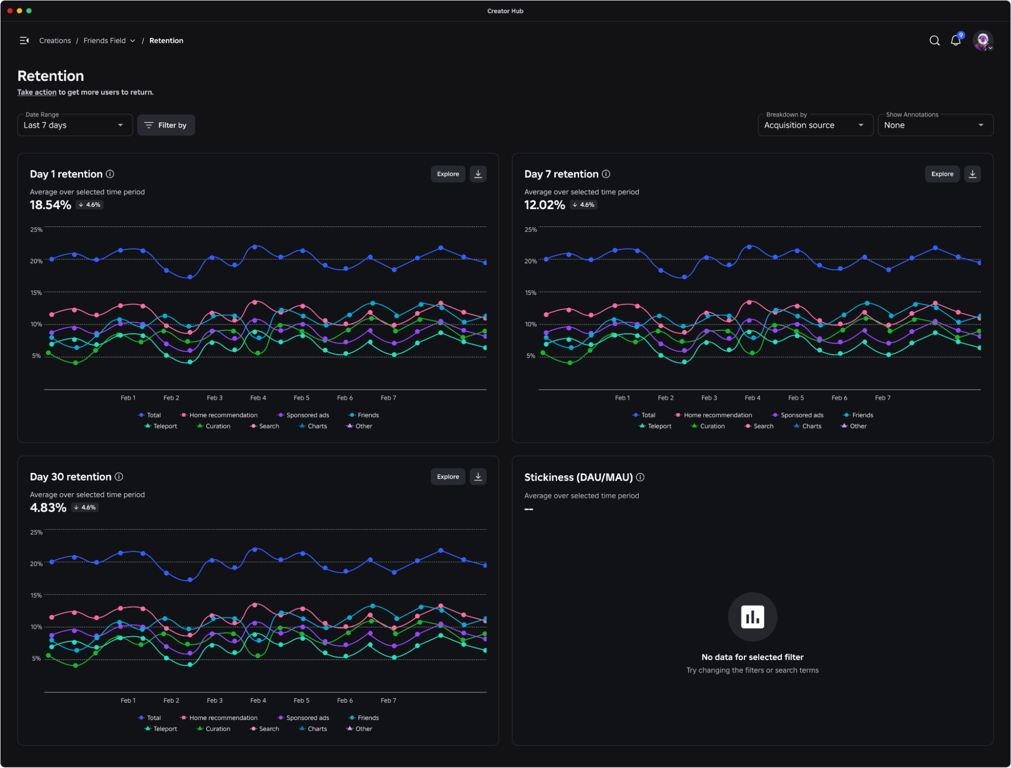 Coming later this year, you’ll see detailed acquisition and retention metrics for each growth source. This will help answer a key question we often hear: “How do users from different sources contribute to my channel’s success?” By seeing the distinct behaviors of each audience segment, you can learn how they complement each other to build a thriving and diverse community.