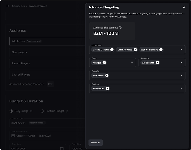 Soon, you’ll have more options, including the ability to reach players more likely to make in-game purchases within your experience.