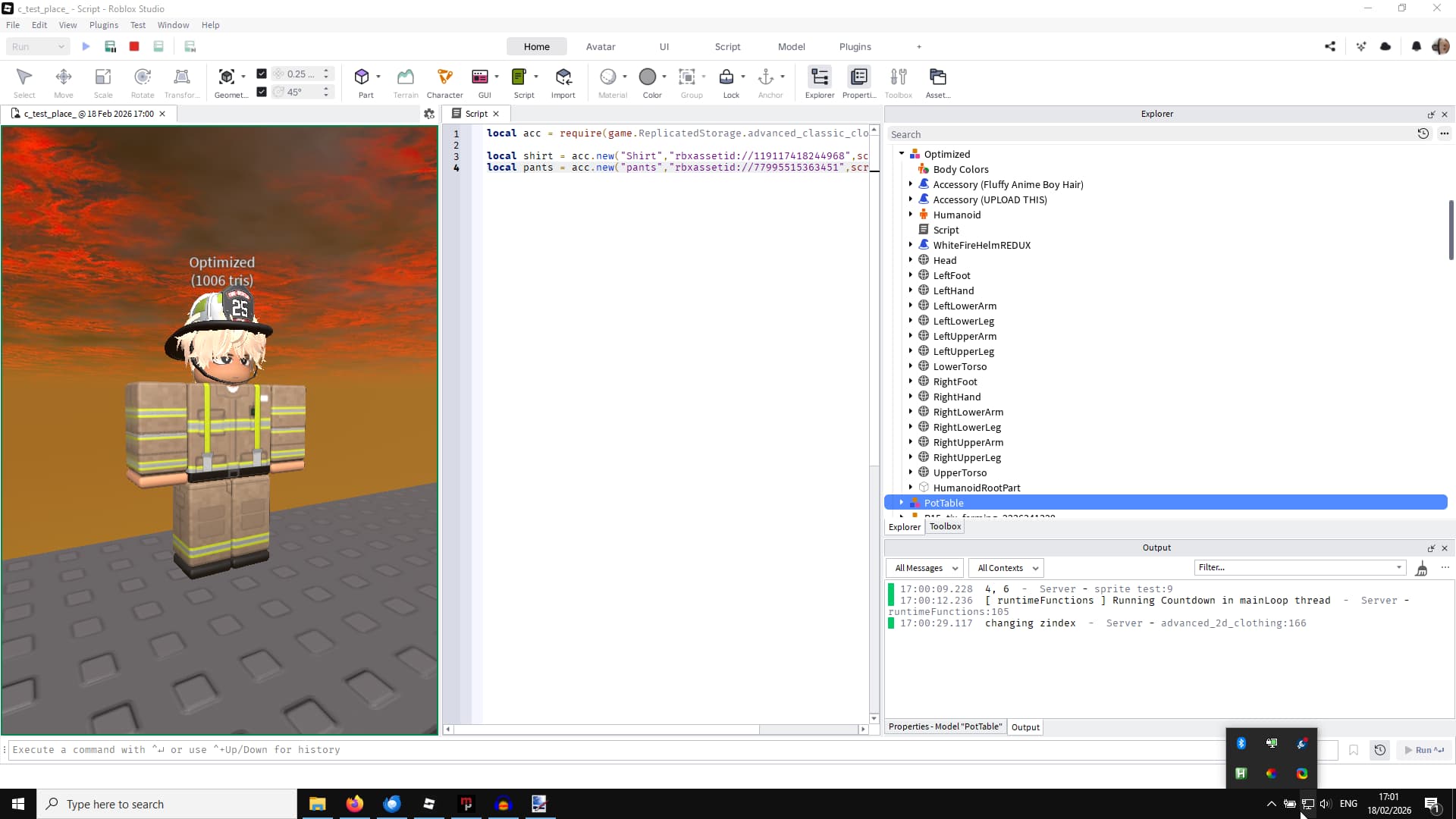 Now we want to add in the pants. You simply do advanced_classic_clothing.new() again except you change the image Id to a pants image and set the clothingType to “pants”