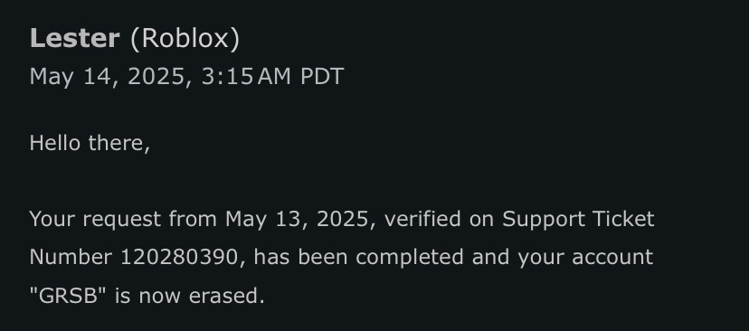 Hello, i have a bug report regarding some users who filed a data privacy request/RTBF request on Roblox.