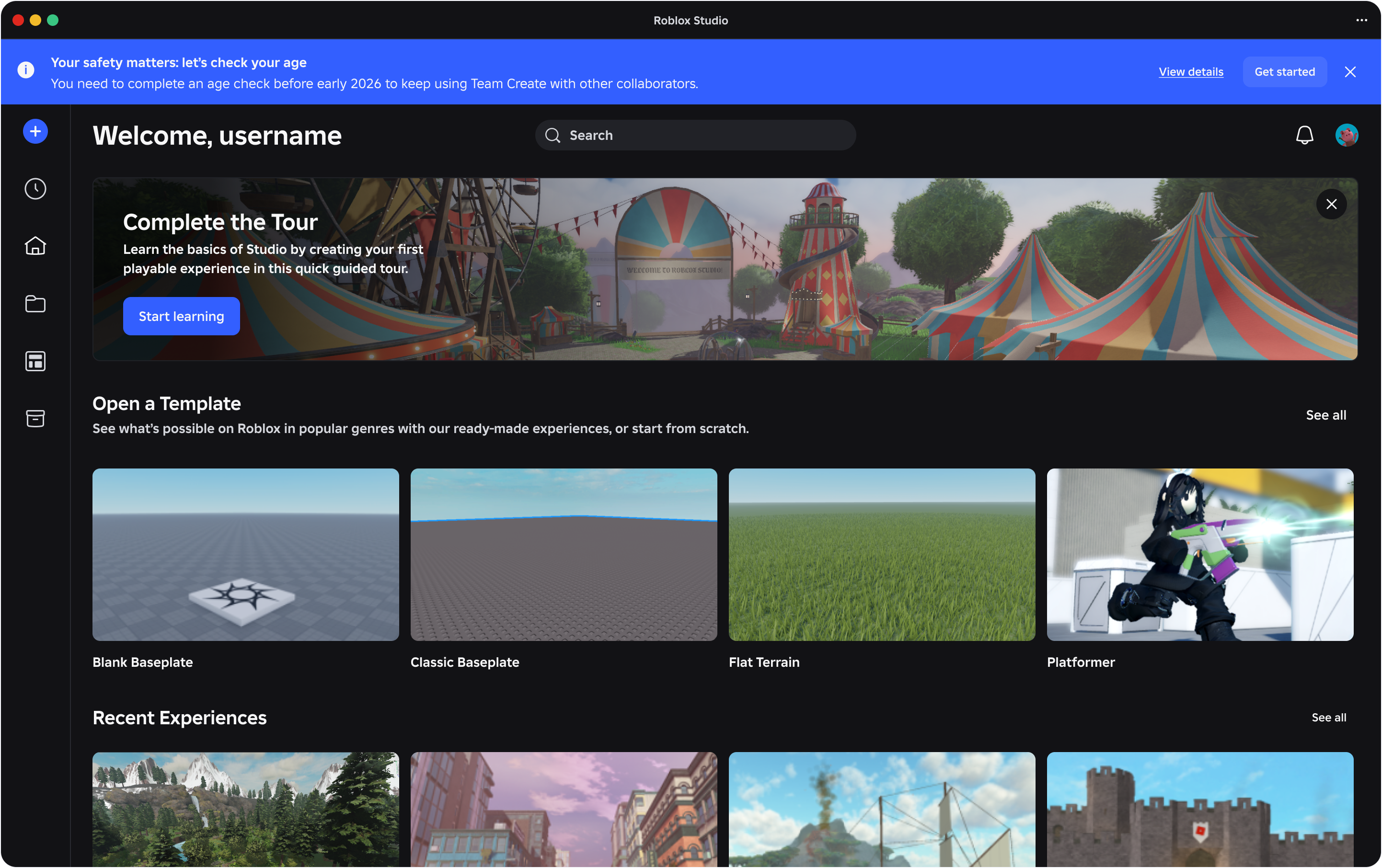 Beginning in December, creators will receive notifications in Studio and the Creator Hub to complete an age check. This will become a requirement to use the Team Create collaboration feature with other creators early next year. All creators will still be able to create in Studio and use Team Create alone; this change only applies when using the Collaborate feature in Team Create.