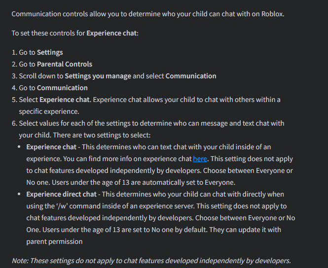 And I do mean that with all my heart, the fact that this is even an issue is a output of failed parenting. Parents should take MORE responsibility for what their kids are doing, and what they’re able to see. There are already chat restriction features that parents can enable to help/solve issues with unsafe chats or unwanted chats from users deemed to be unsafe.
