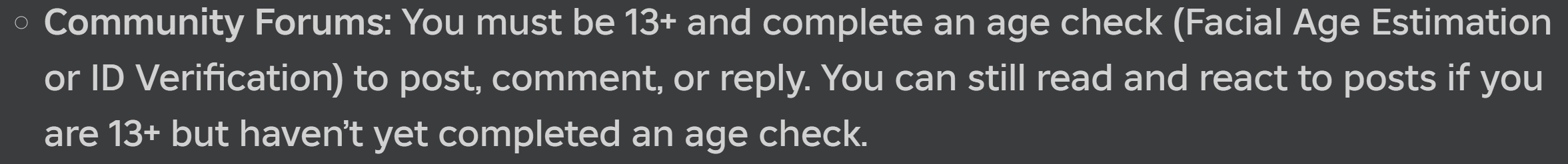 Personally i think age verifications are pointless especially in devforum but honestly it does seem like the dark ages for their moderation. Sure they maybe couldve done these age verification updates to catch a break or something (i literally wish now that i think about it)