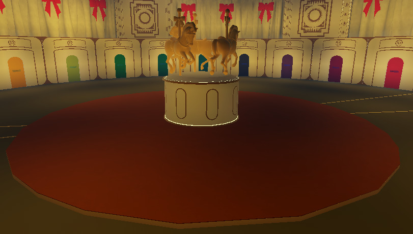 This worked for the most part, as it allowed me to spin the platform while carrying the players with it. However, I ran into some issues: when players run into the barrier that keeps them on the platform or onto the horses in the middle, the platform begins to stutter and lag.
