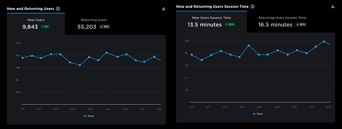 If New Users adds or reduces 30s, you won’t notice at a glance if the scale stays the same, but it might be a very big impact on whether those new users will come back the next day and a leading indicator that your D1 Retention is about to change