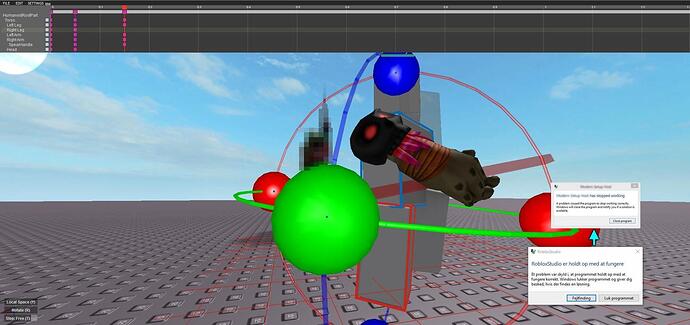 I have tried making the same animation 5 times now, all resulting in ROBLOX Studio stopping working. Since the ROBLOX animation plugin does not autosave animations, I am pretty much screwed if I don’t save after every change I make to the animation. The crashing seems to happen when I drag ArcHandles for the limbs.