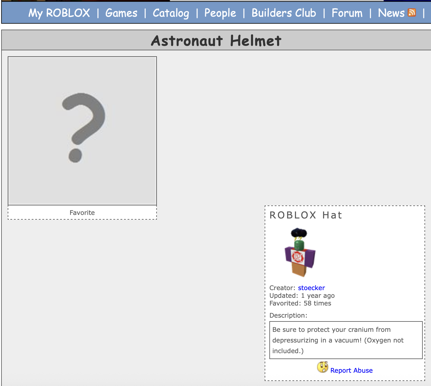 What most likely happened is that the original uploader of the hat “stoecker” messed up when uploading it seeing how the very next hat in their inventory is the current Astronaut Helmet.