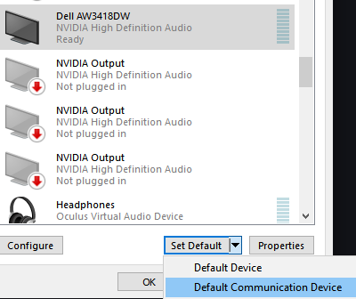 On Windows, if you use it, you can go to the Playback Devices control panel, then select a “default communications” device.