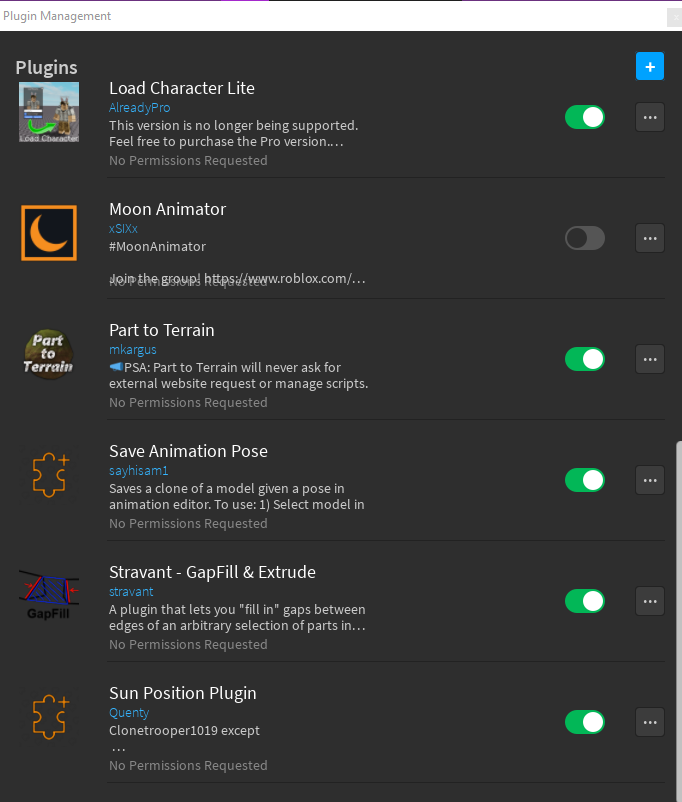 Notice how the 2 different Part to Terrain plugins are made by different people? You have the same version as me. (I’ve used the plugin and haven’t had issues.) The 2nd developer has a different plugin entirely. A lot of plugins you use I have never heard of, so I’m not sure about those.