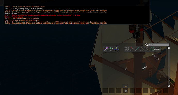 For the past 1-2 days, I’ve experienced the backpack bugging, showing a tool in slot 4 as if it was in 0, and when dragging it to slot 0, it got hotkey 10. Just now, when I joined a server at this place, I couldn’t drag down tools from the inventory frame to the backpack tool bar. :?