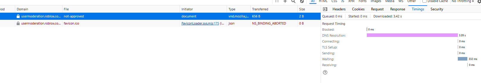 I got on LibreWolf and tried to access the endpoint directly and DNS resolution took 3.4 seconds, 400ms past the timeout. This is before additional 400ms of processing