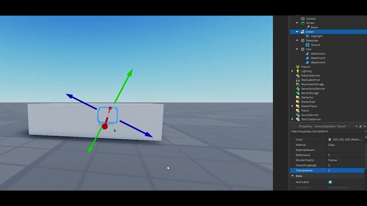 Basically beams don’t render behind glass materials, this happens both with unions and parts. Even if the glass transparency is 1, it still won’t render.