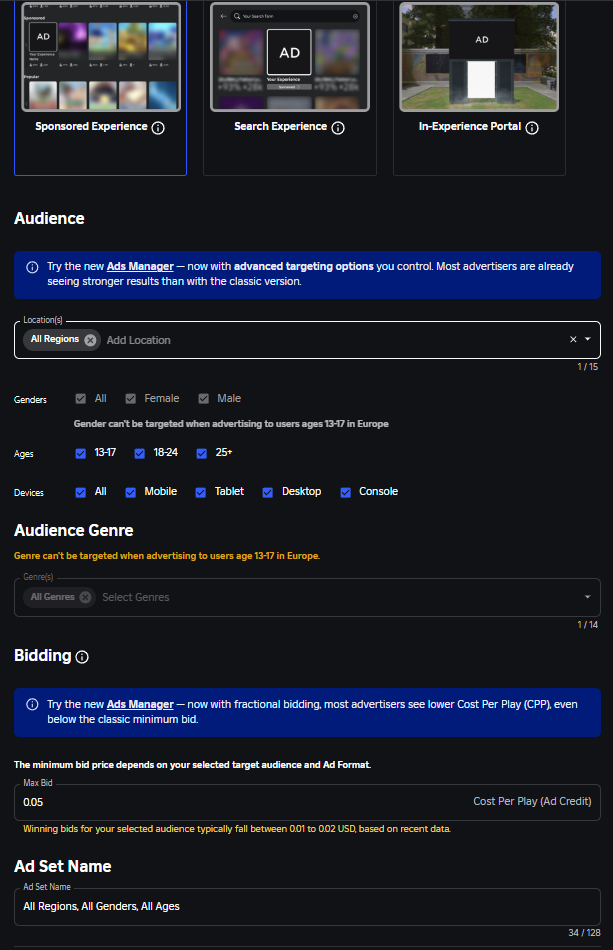 I’m currently working on a video that will need a large number of random users inside my game. I want the most amount of players I can get with my budget for around 5 hours. My budget for ads is 20k Robux.