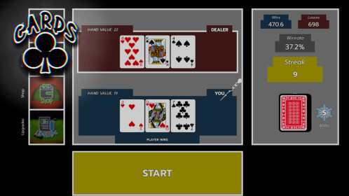I like the rooms idea, it’d make the game feel less isolated and more engaging. I’ll try it out next time I have the time to work on the game. I might try to implement more games than just blackjack in the future, but that’d be a long ways away since the whole game is structured around it.