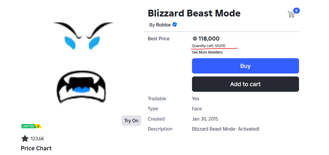 Sorry for not including this in my other thread regarding the Black Iron Antlers, but Blizzard Beast Mode is also showing 1 stock remaining despite being a Limited U that sold out a decade ago.