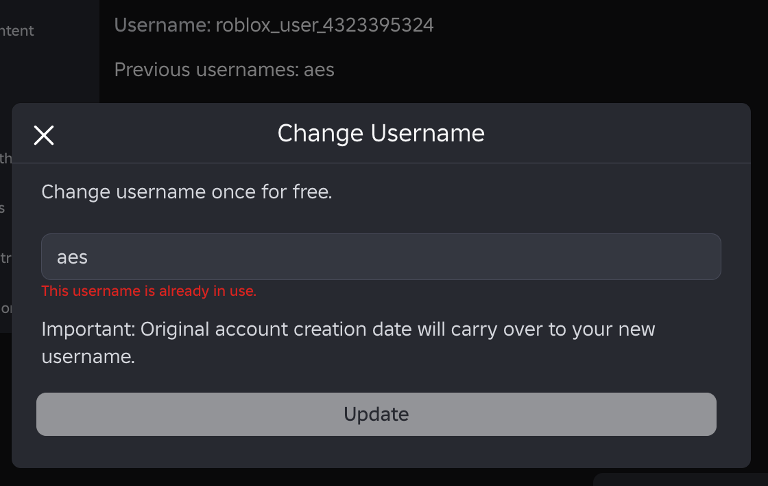 A friend of mine has a somewhat confusing issue related to their username change feature. Their user id is 900156319 and as with many users they have multiple usernames over time. The issue is that when they attempt to change to to “Zbn” which is one of the usernames they previously had the system falsely says it is in use. What is particularly strange is that “MINECRAFTEUR2000” and “cIemouches” are two of the other former usernames that they can normally change back to. This is how username history features are supposed to work, and they have footage showing that this works as expected for those names. This indeed looks like some kind of an unresolved issue that needs to be worked upon. The system for name changing usernames should allow all users the ability to reclaim any of their usernames provided they had previously changed to long as it is in their history. The fact that for some users the system works, while for others it does not work suggests that there is likely a problem with the system logic designed to verify ownership of usernames through history?