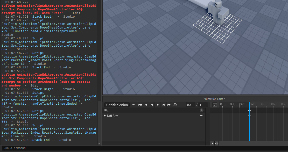 The second error (attempt to perform arithmetic (sub) on Vector3 and number) seems to be thrown when the animation is a curve animation.