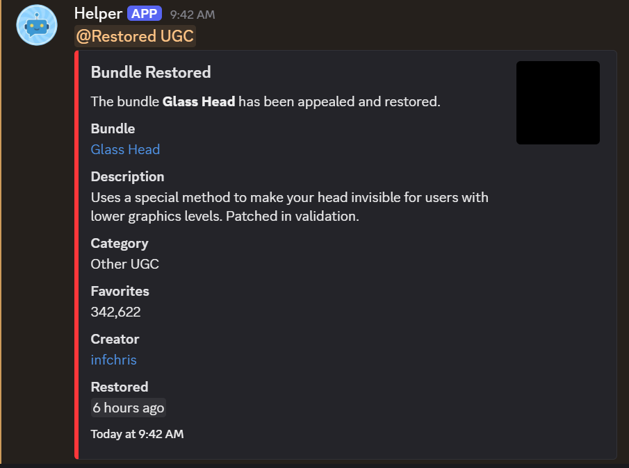 Jokes aside, something like this should not be on the marketplace, what’s even worse is that there are scam items that are impersonating this item and the headless head (they’re just invisible hats which do nothing).