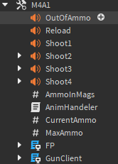 M4A1 is just under StarterPack. The code that I have listed above is in the LocalScript “GunClient”. Everything else works, but for some reason it is the only thing that doesn’t in that script.