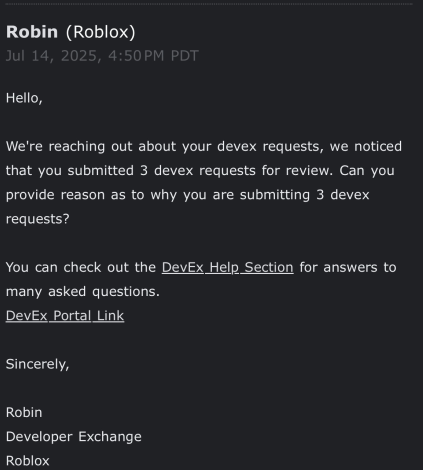 My question is: can you still do DEVEX, or does roblox keep some sort of blacklist idatabase of terminated users’ information so they can never do DEVEX again?