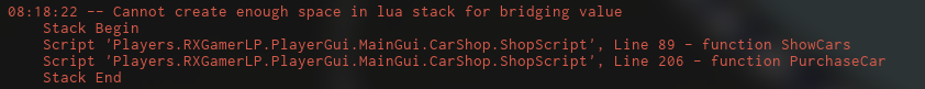 Cannot create enough space in lua stack for bridging value