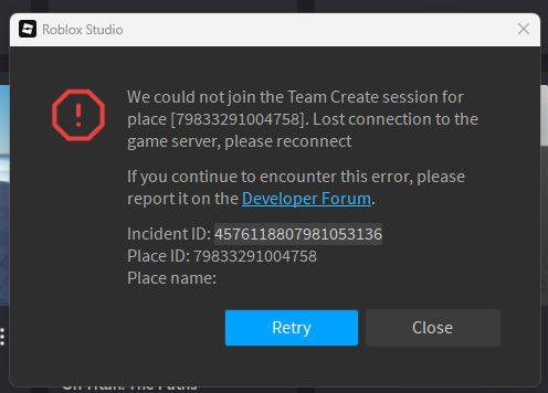 Self explanatory, cannot open the place but I can open other ones completely fine. Whenever I try opening the place in specific, it stalls at ‘connecting to server’ before giving me the error message.