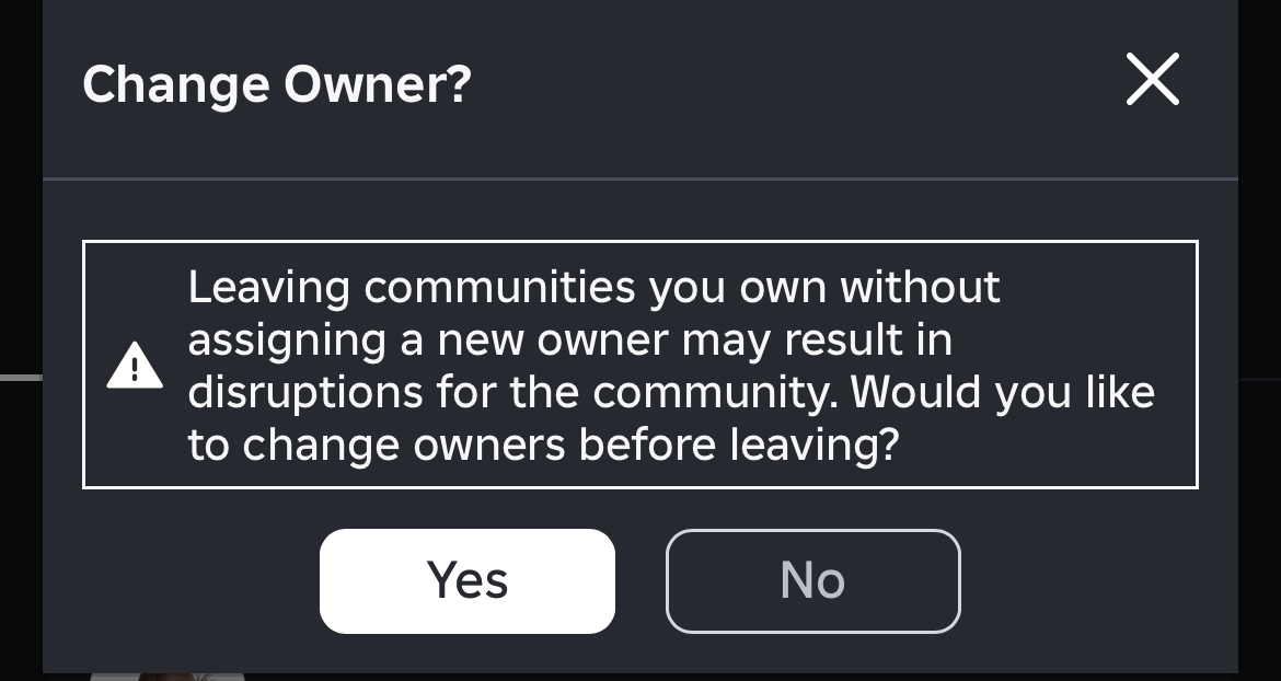 It asks you to add someone else as the owner of the group but since there’s nobody to give the ownership to i can’t leave.