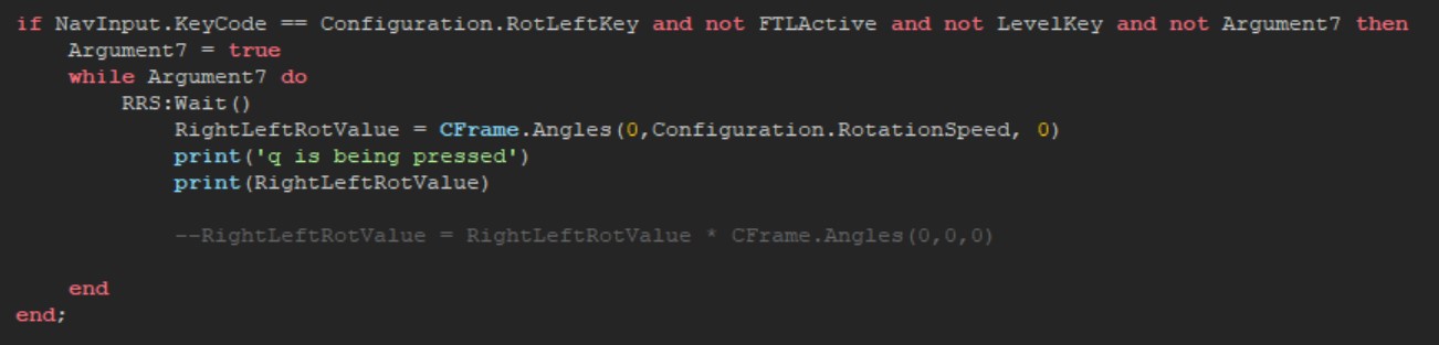 Now what I want it to do is that when the key is pressed, the object starts rotation, but when the key is released, it stops at its current location.