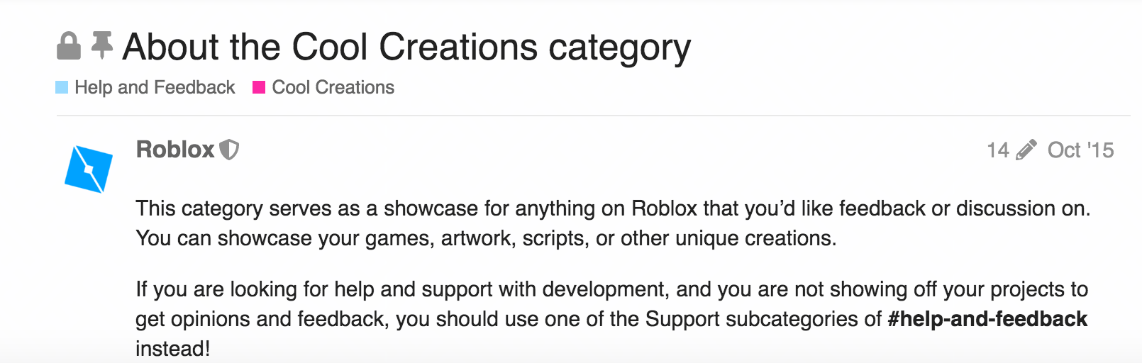 The Cool Creations Category is for showing off work and asking for feedback where the support categories are more for issues and questions.