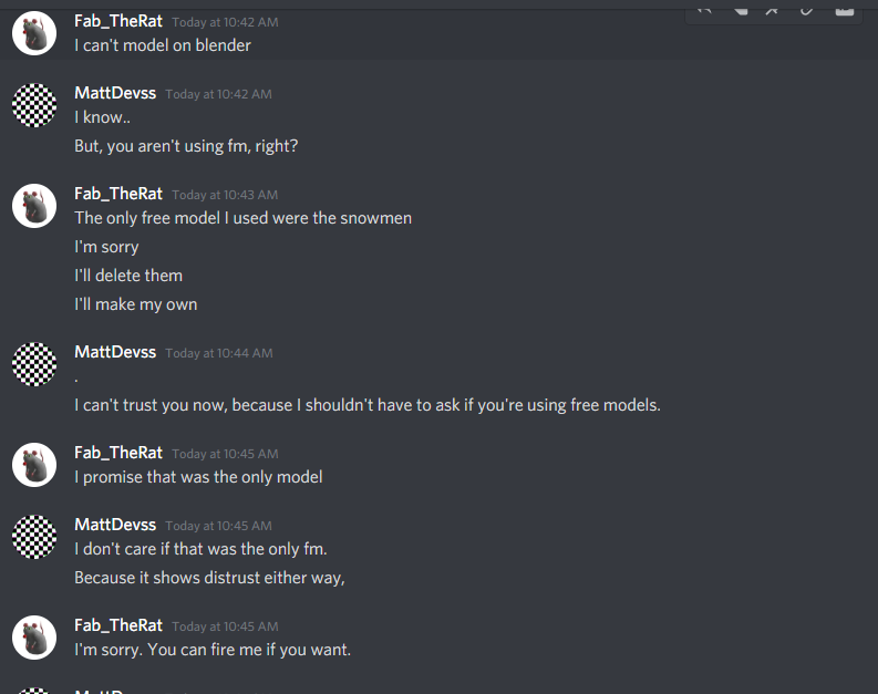 I have used 2 free models and I lied and said it was mine I’m disappointed in myself and I’m sorry. If you would like to cancel on me its ok. I’m sorry @MattDevss. I don’t deserve to be hired.