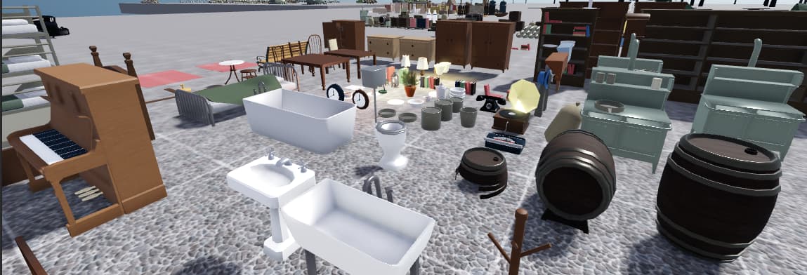Collection of items for a city game. Commission from mid-2024.