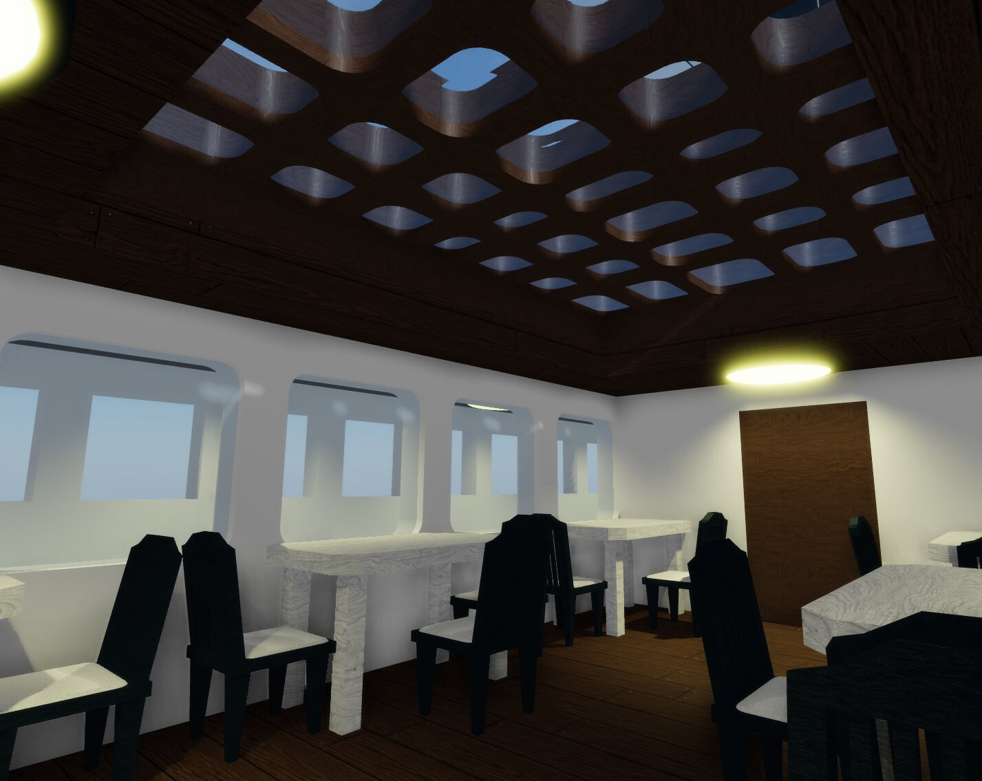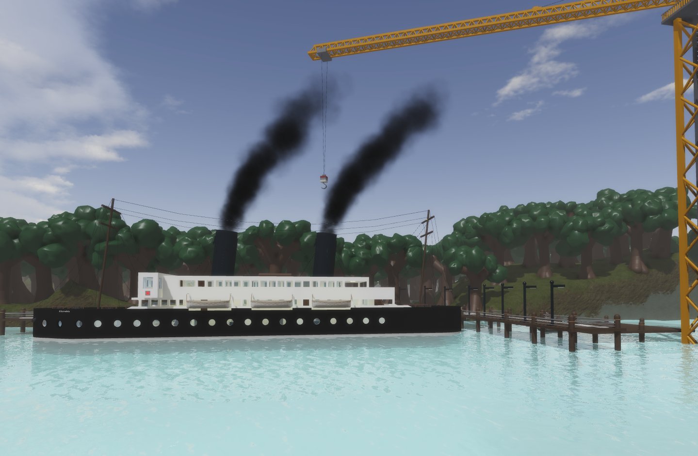 I made a cartoony-styled sinking ship game. I did 1/3 of the scripting, and I built the entire ship and the dock on the island. It is still a work in progress but is playable. You can play the game by clicking here. (This ship has been featured in another game, which was largely collaborated. I will not be linking that game here for that reason.)