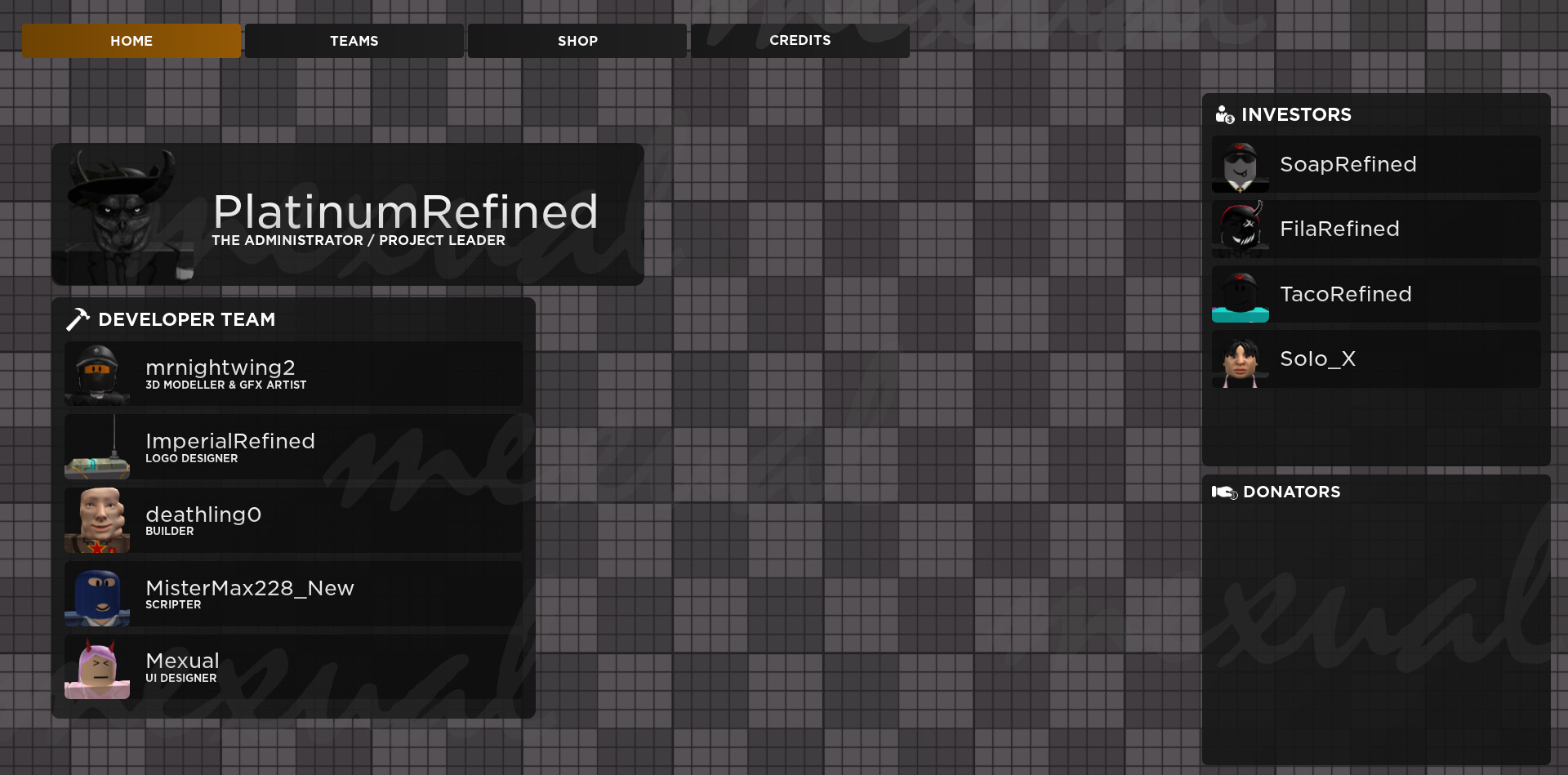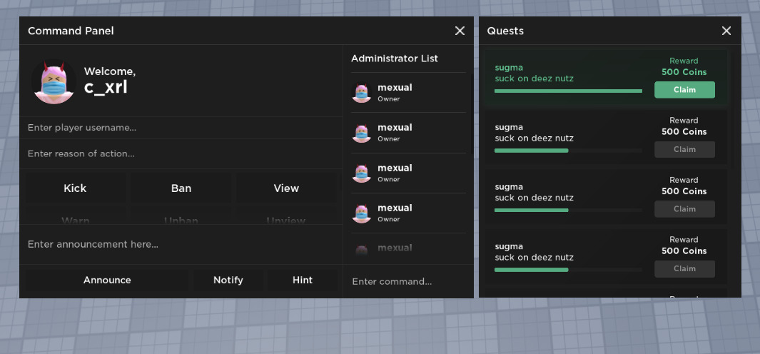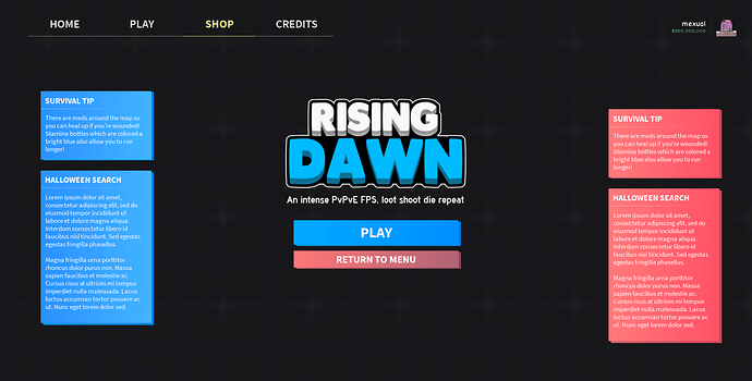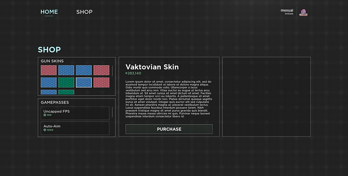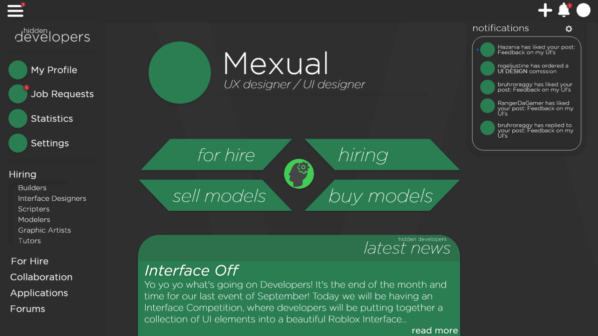 Hello! My name is Mexual, and I am a UI designer with over a year of experience. I’m best at modern UI designs. I use Roblox Studio and photoshop to make my UIs, sometimes Photoshop too. All of my UIs will be imported into Studio then sent to you as a rbxm file or model.