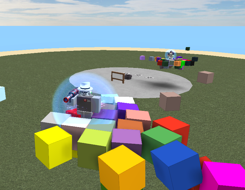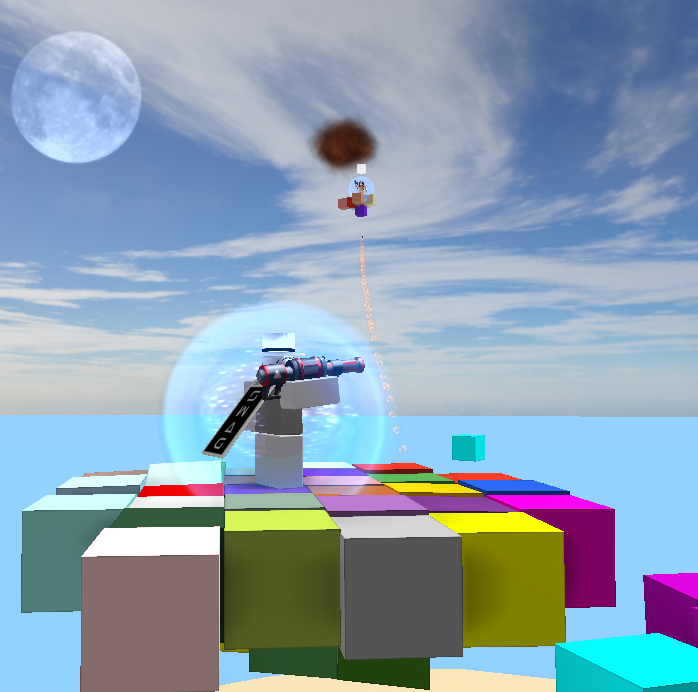 Hey guys! This is a game that me and my friend Exudo made today. We stumbled upon this concept when playing with cubes that track and follow players with BodyPositions. We learned that multiple cubes would coalesce around players and lift them up into the air. Almost like some kind of modular airship!