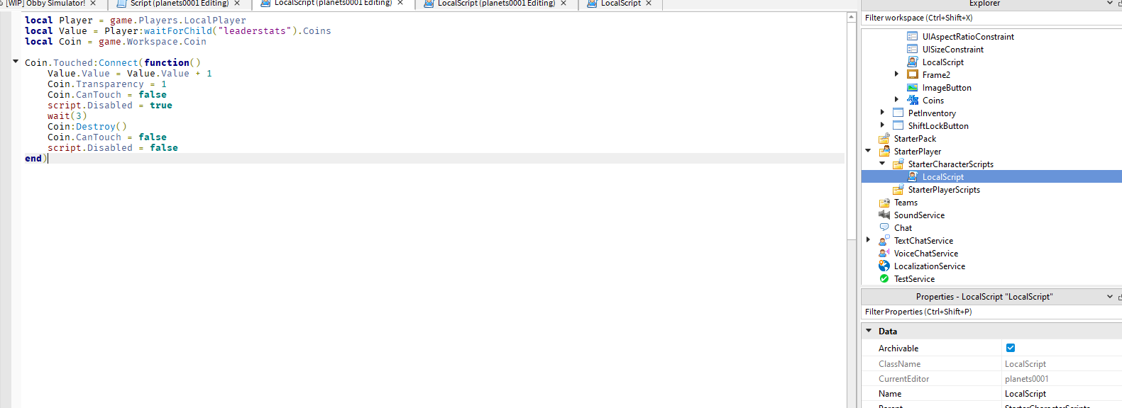 Uhm so now when i touch the model “coin” it records coins although the part no longer destroys, and as long as humanoid is touching it, it records it. As previously i want it to disappear when touched