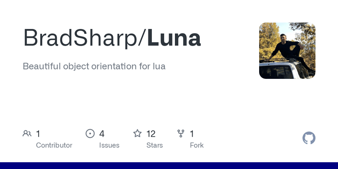 Luna isn’t perfect. I wrote many years ago, before I had the understanding of Lua that I do now. I would like to rewrite it, and preserve the syntax, but also reduce the complexity between public, private, and static variables.