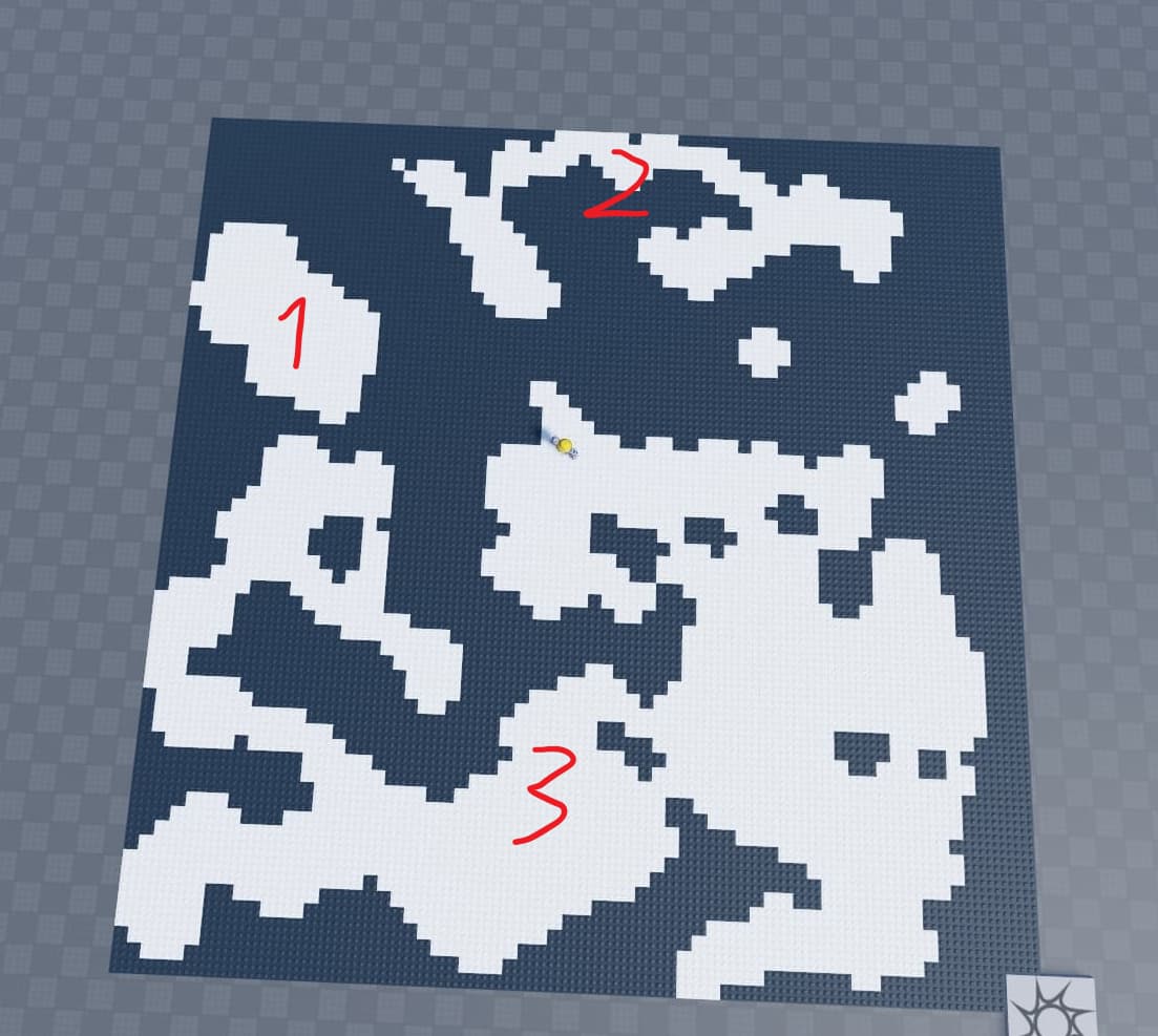However, how would I use flood-fill to find and distinguish different regions of my cave, like so: