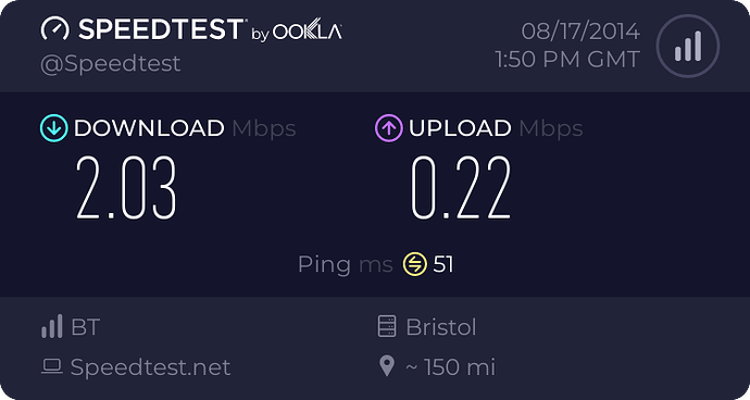 I go through the same provider (a BT phone line) but still somehow I manage to get a better connection. My parents are playing games, and my sister is streaming a video, so this isn’t particularly correct: