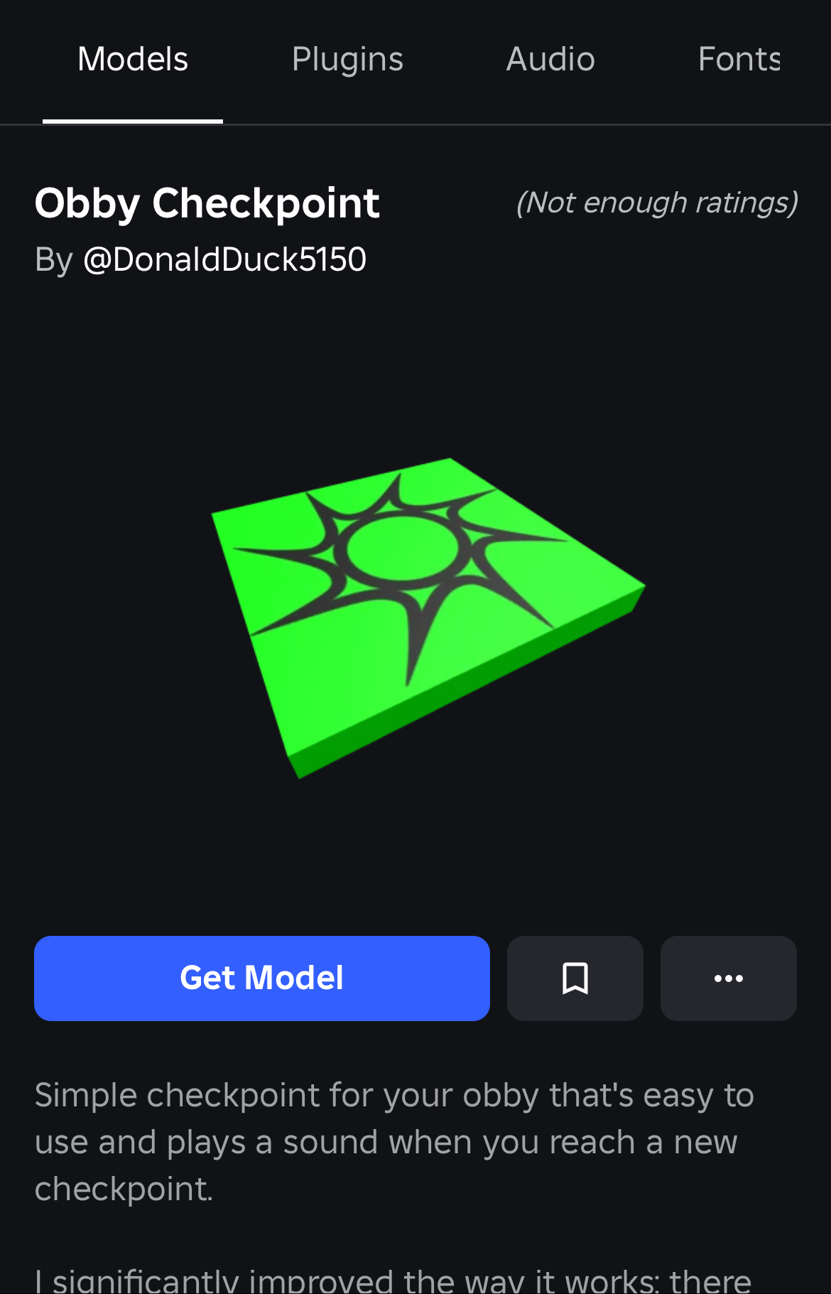 Page URL: https://create.roblox.com/store/asset/134985711545142/Obby-Checkpoint