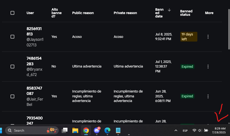 There appears to be a synchronization issue between the BanAsync API and the moderation interface on the Creator Hub. Although bans are being successfully applied in-game, the “Bans” section in the Creator Hub fails to reflect recent activity.