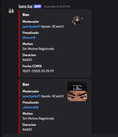 These bans are accurately logged via my Discord webhook, confirming the system is operational.