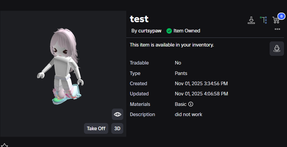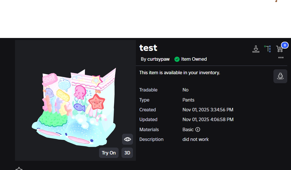 effect shows up on catalog thumbnail, but not when i wear it. this is definitely a bug ![]()
