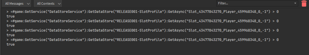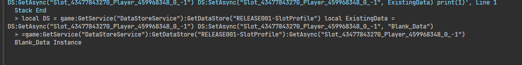 local DS = game:GetService("DataStoreService"):GetDataStore("RELEASE001-SlotProfile")
